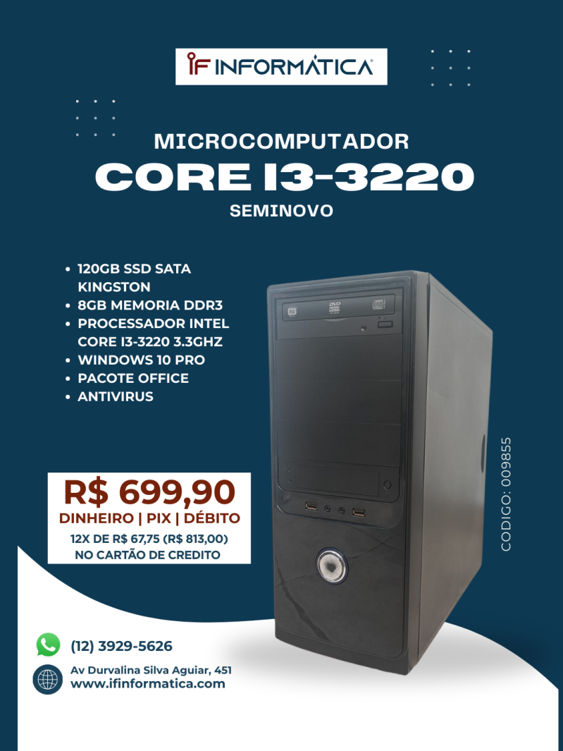 | 3x | R$ 233,30 | sem juros | R$ 699,90 |